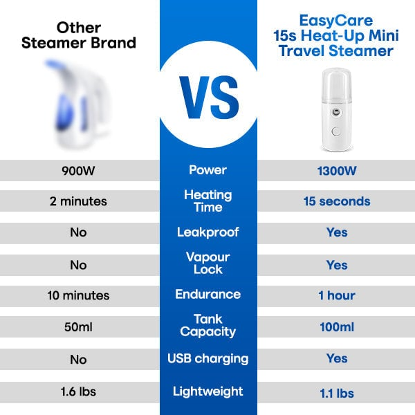 Easy Care 15s Heat-Up Mini Travel Steamer with high temperature bottom plate enhances the ironing effect. Steam at 226-230℉ can deeply clean your clothes, bringing you a thorough cleaning experience.